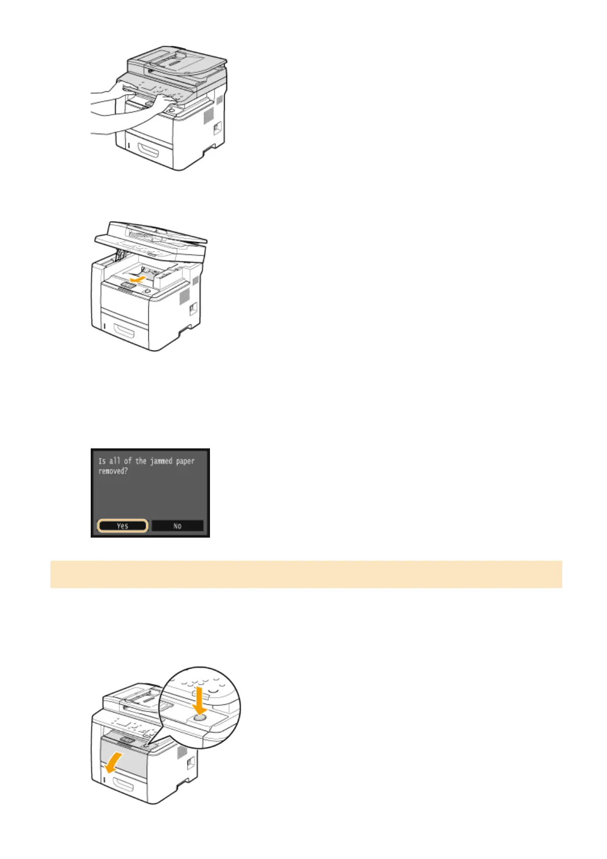 Do not forcibly remove jammed paper from the machine. If the jammed paper cannot be removed easily, proceed to