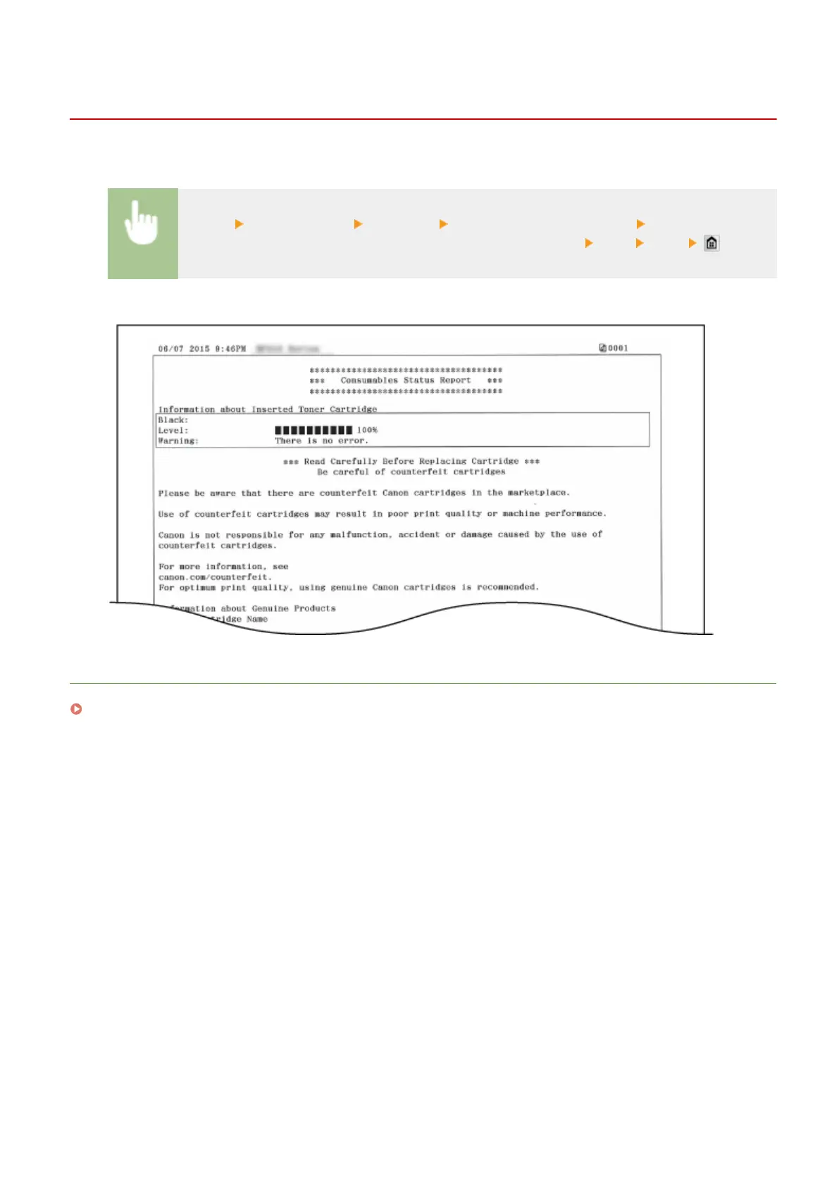 <Menu> <Output Report> <Print List> <Consumables Status Report> Check that the size
