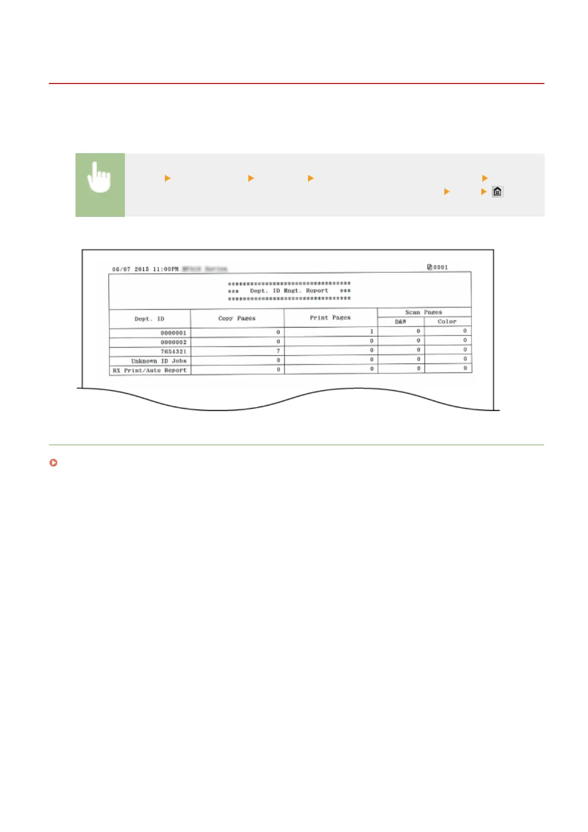 by printing a Department ID Management Report. By checking the printout totals, you can better manage your paper