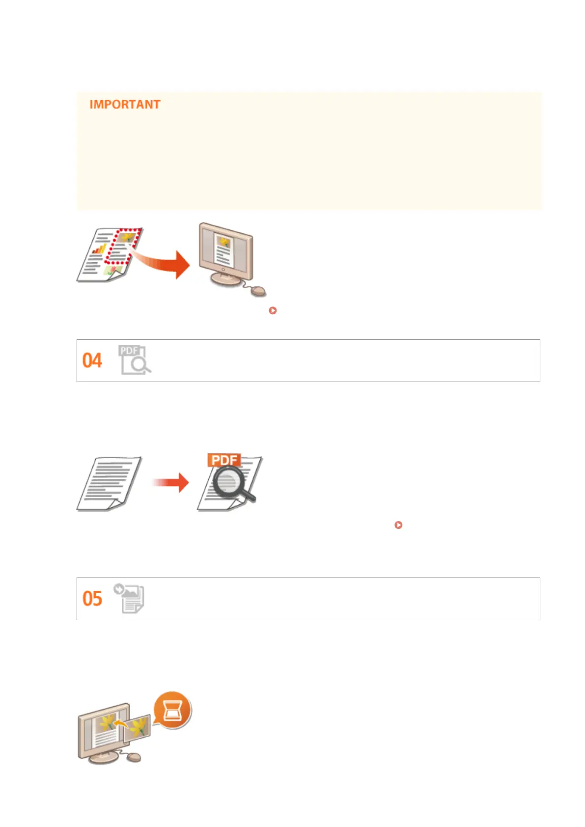 Searching of text in a PDF can be done with a "searchable PDF". By scanning an original with both text and