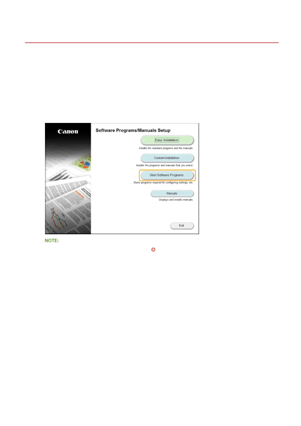 ● If the above screen is not displayed, see Displaying the [Software Programs/Manuals Setup]