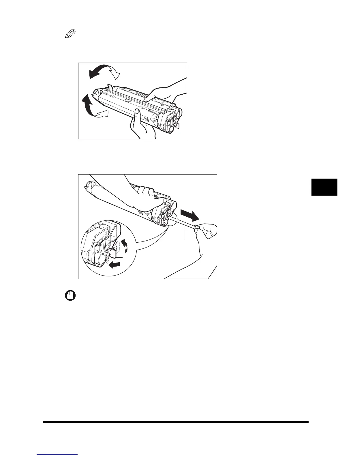 Rock the cartridge 5 or 6 times to distribute the toner evenly.