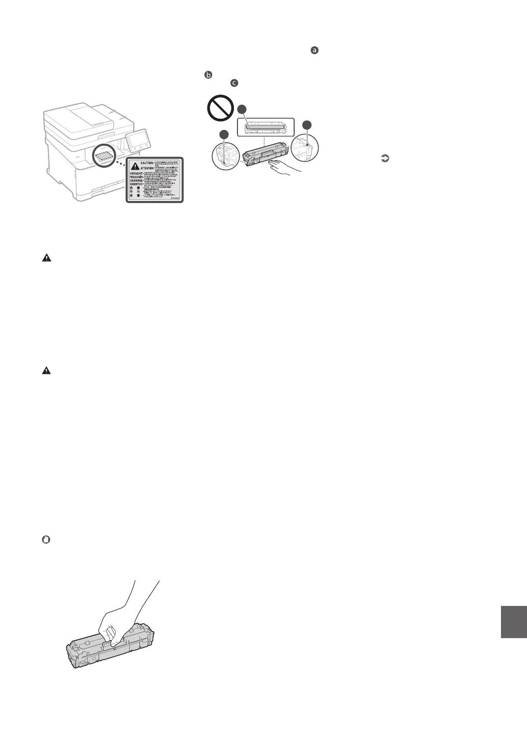 Удерживая картридж с тонером, обязательно