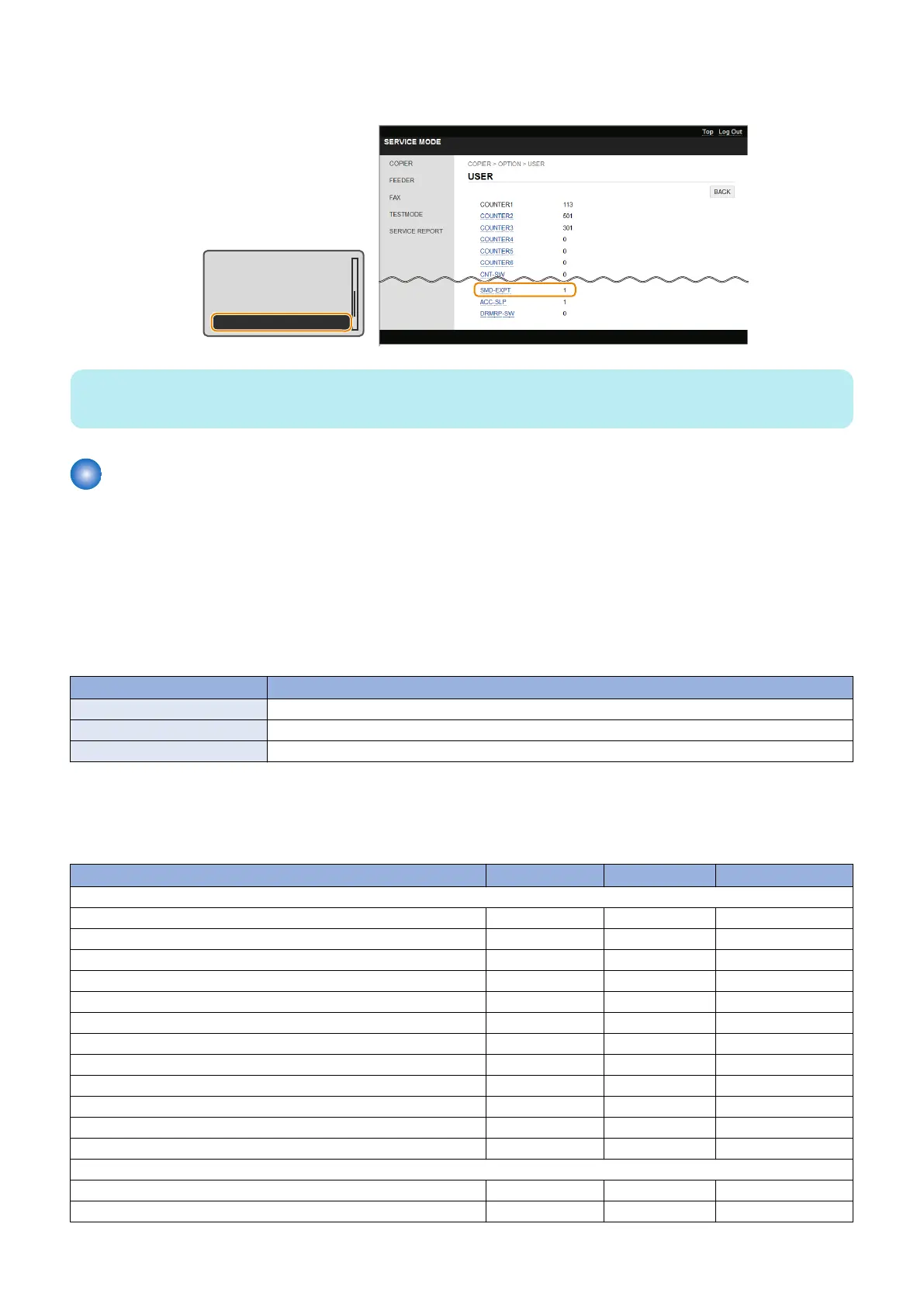 • COPIER > OPTION > USER > SMD-EXPT