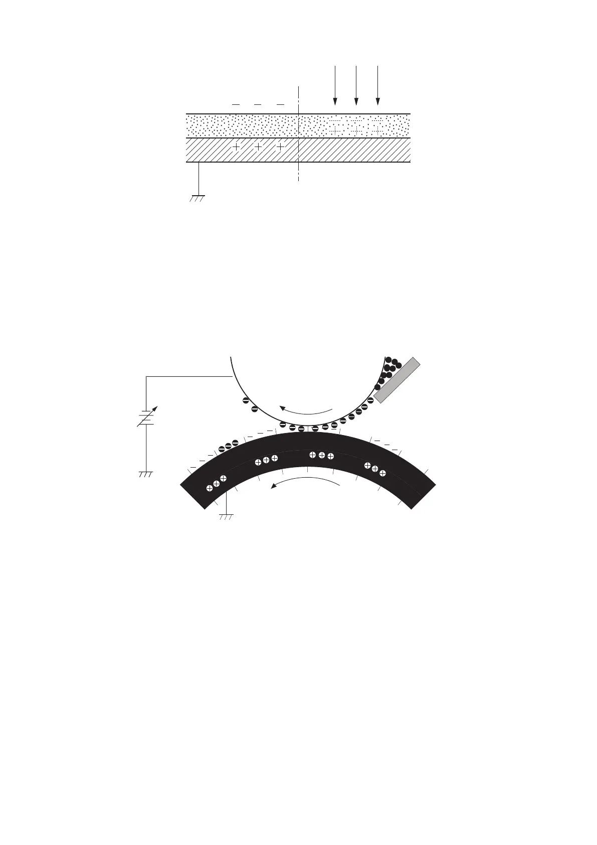 Toner is then charged negatively through friction between the developing cylinder and the developing blade surface. The DC bias