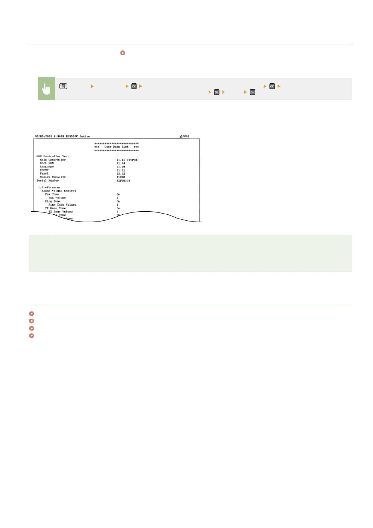 You can check the list of the settings ( Setting Menu List) as well as the content that has been registered in the machine by printing a