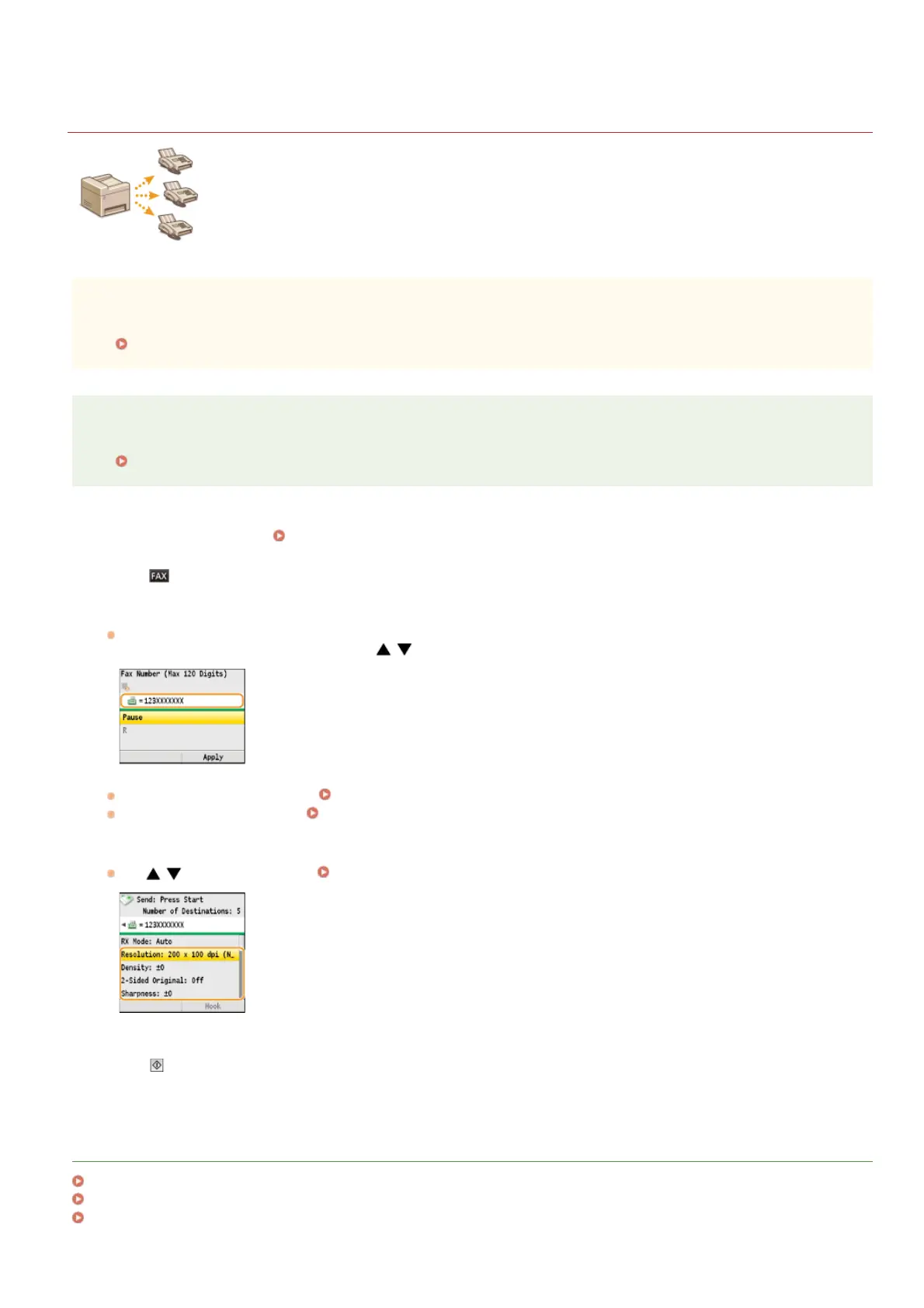 You can send faxes to up to 210 destinations at once. Use the numeric keys or the Address Book to specify