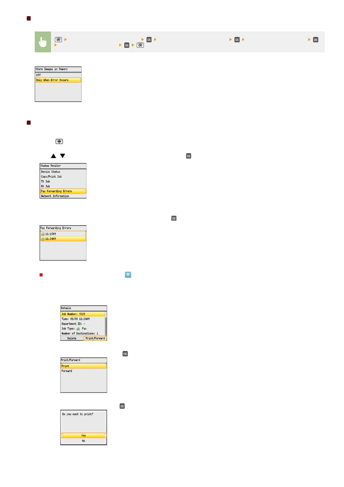 <System Management Settings> <Store/Print When Forwarding> <Store Images in Memory>