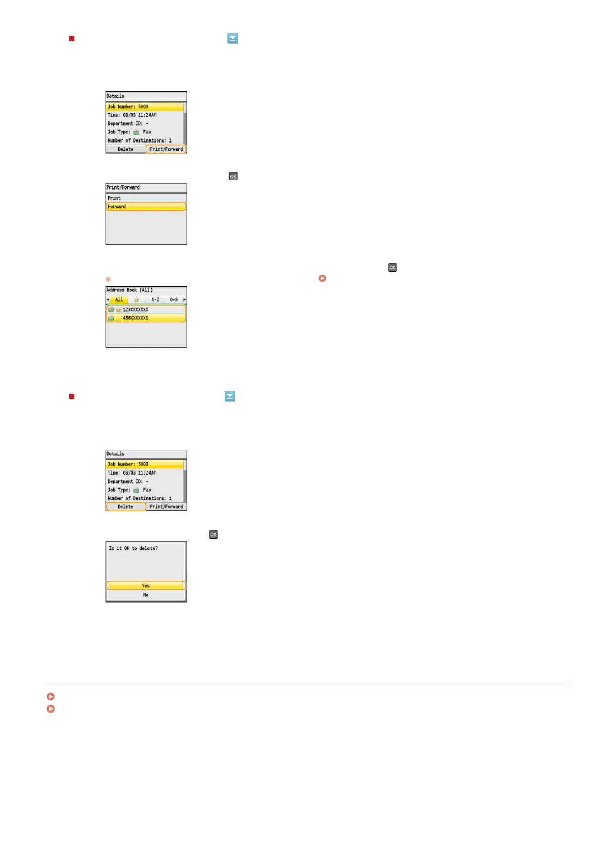 Select the forwarding destination from the Address Book, and press .