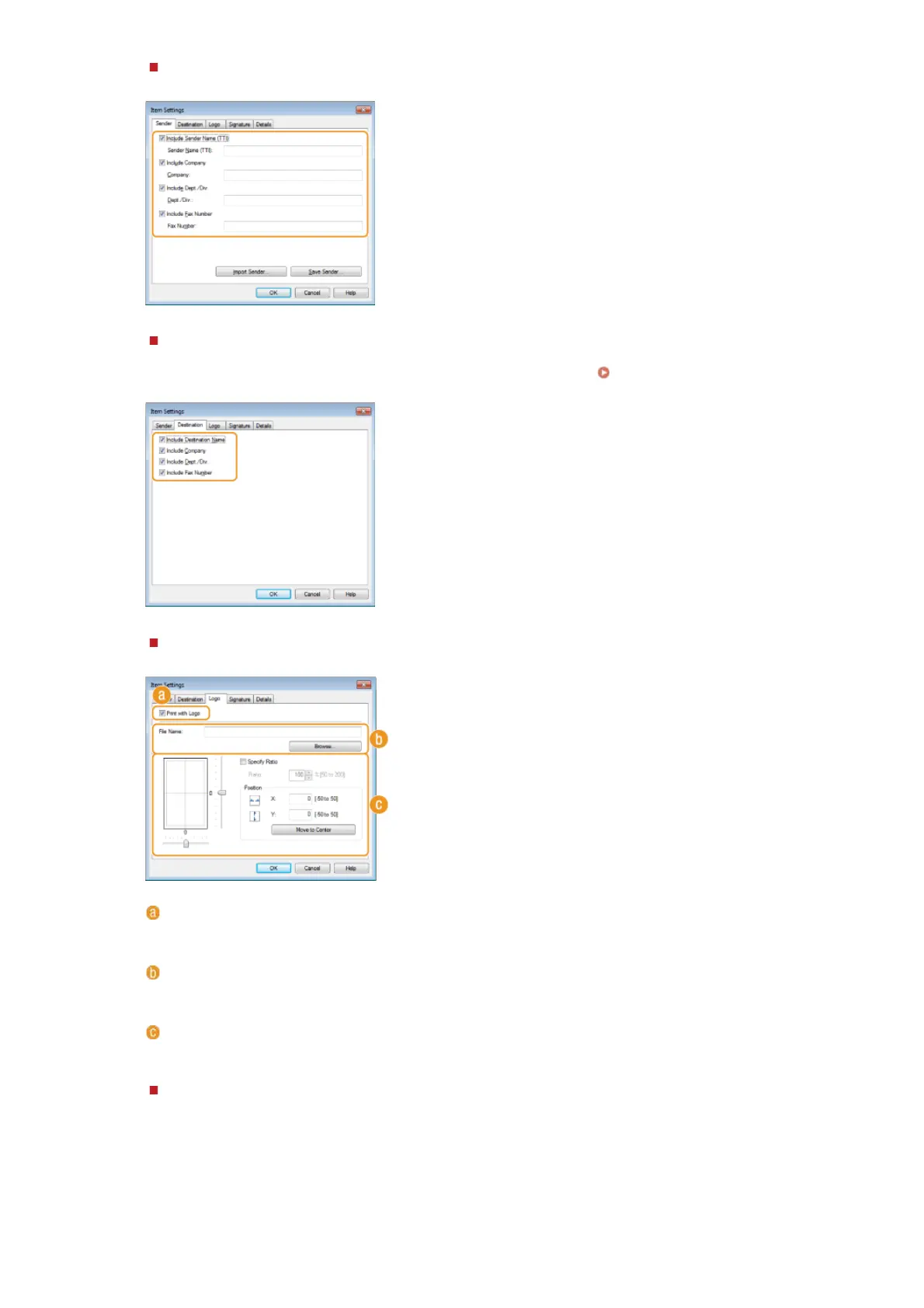 department names, and fax numbers specified in the [Sending Settings] tab (