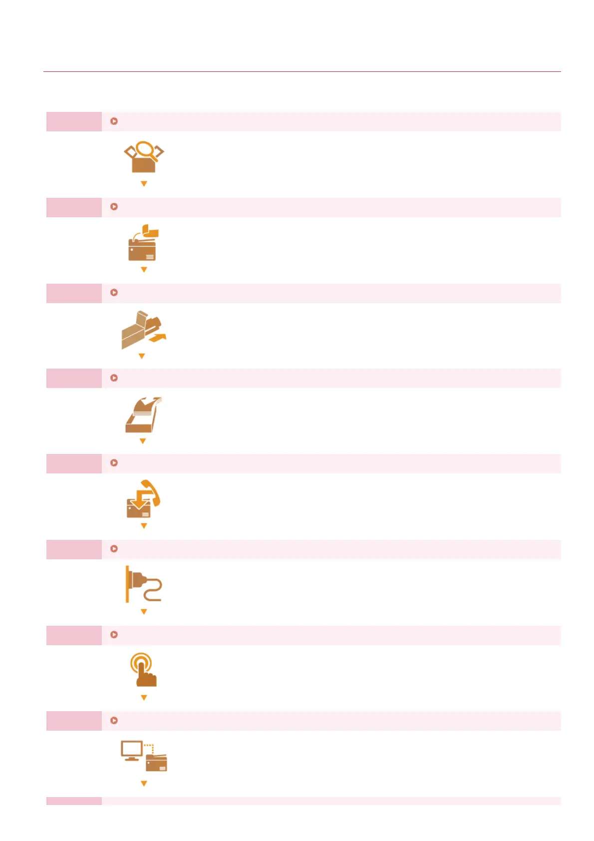 Follow steps 1 to 9 described below to set up the machine. For more information about a particular step, click on the link to go to the