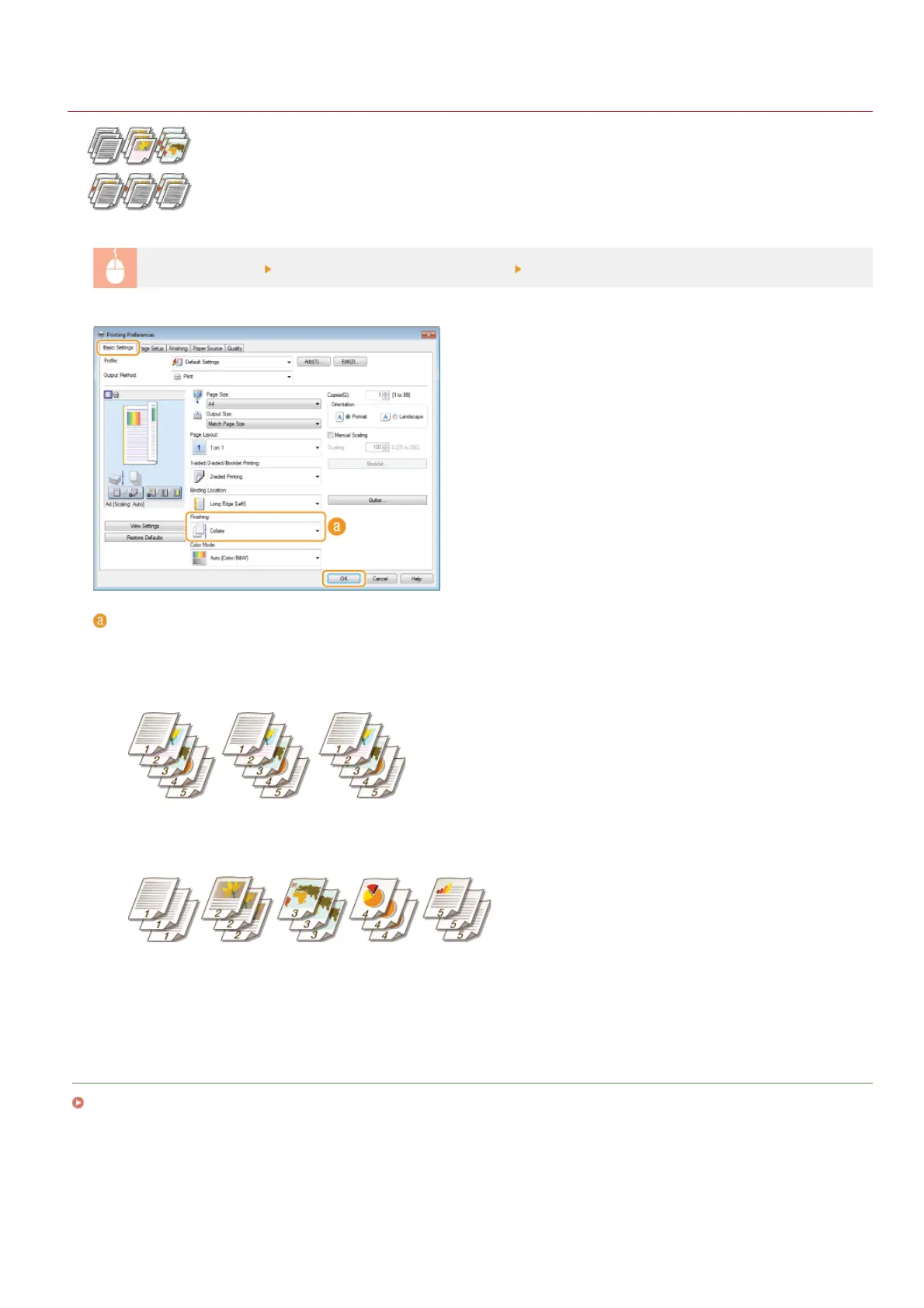 Specify the sorting method of the printouts when printing multiple-page documents.
