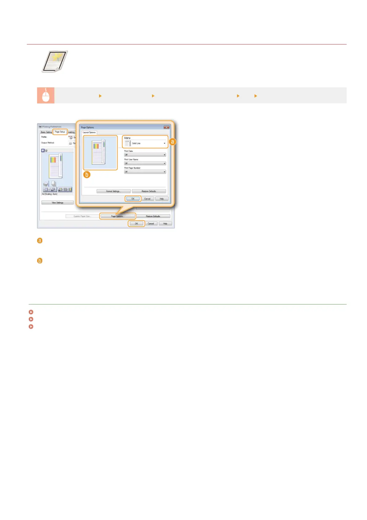 You can add borders, such as broken lines or double lines, in the margins of printouts.