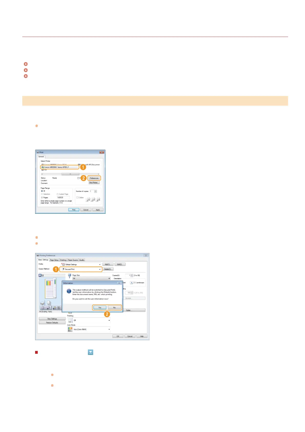 send a secured document to the machine, and the second part of this section describes how to print the secured document on the