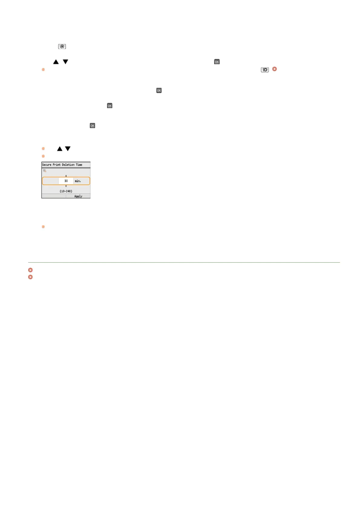 The secured document is erased from the memory of the machine when the time specified here elapses.