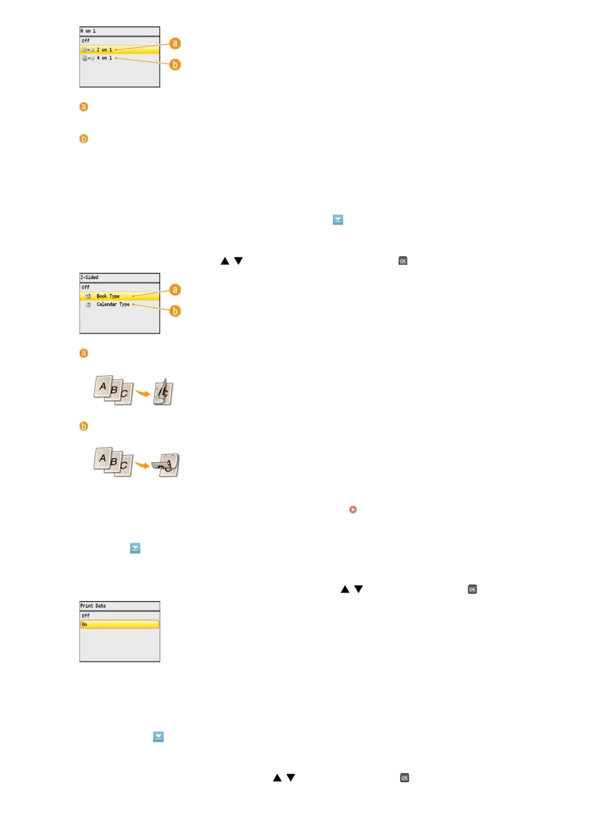 You can make 2-sided printouts. Use / to select the binding position, and press .