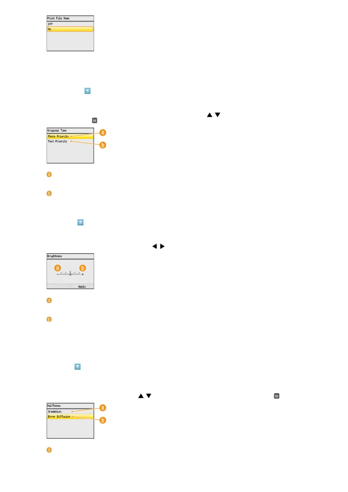 You can select the type of original depending on the image to print. Use / to select <Photo Priority> or <Text