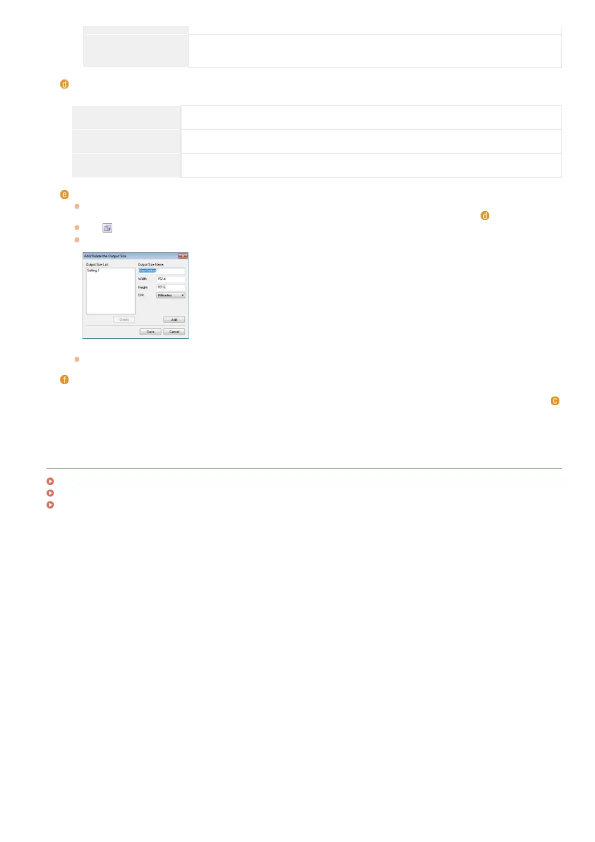 If you select [Add/Delete], you can add new output size settings and delete the added sizes.