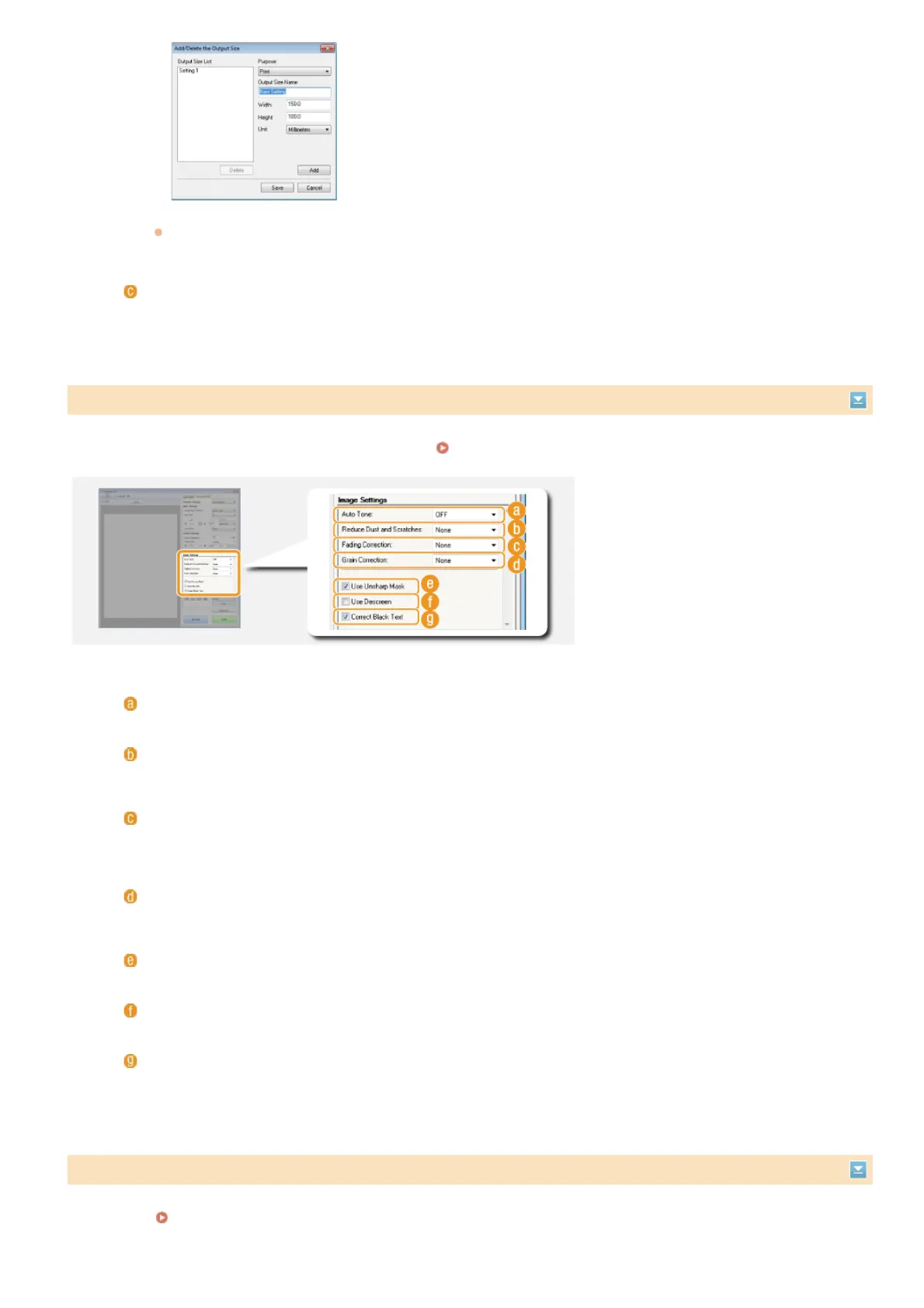 Configure settings for improving the image quality, such as correction of scratches or faded colors on a photograph. These settings are