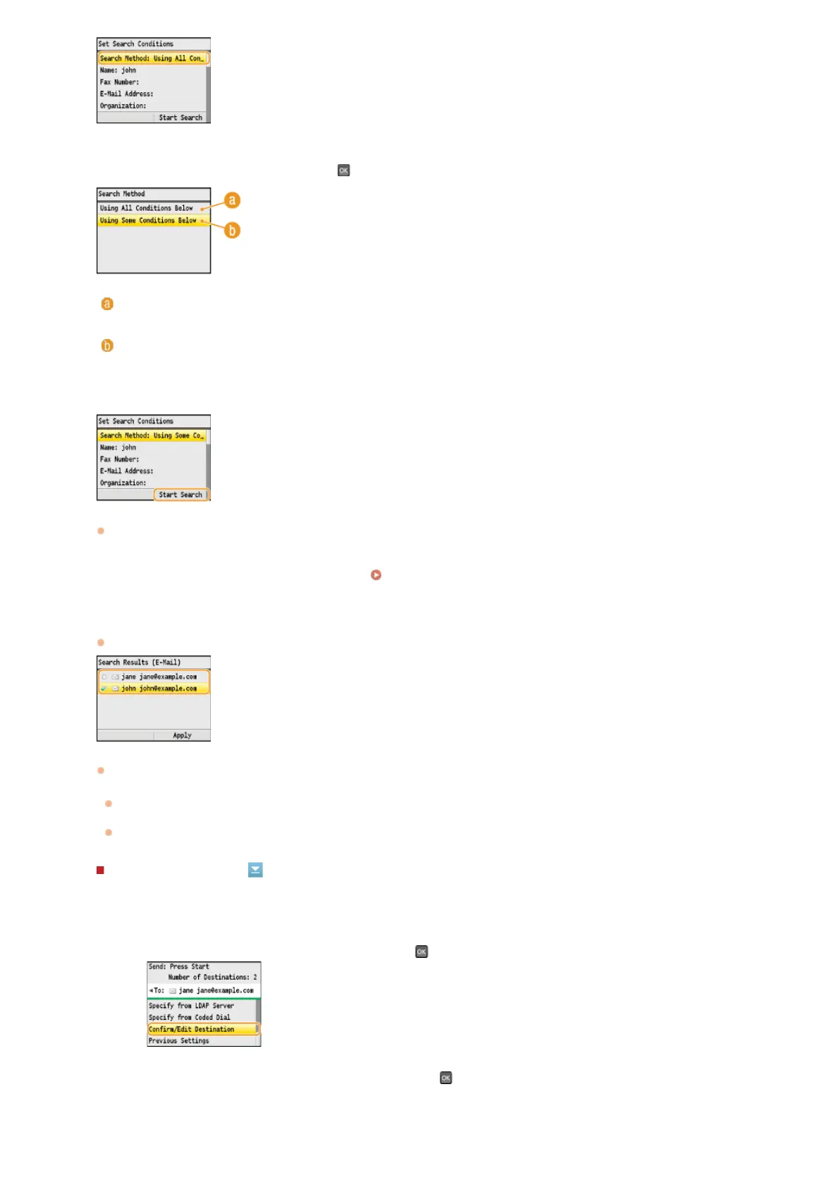 If the authentication screen appears when you press <Start Search>, enter the user name of the machine and the password