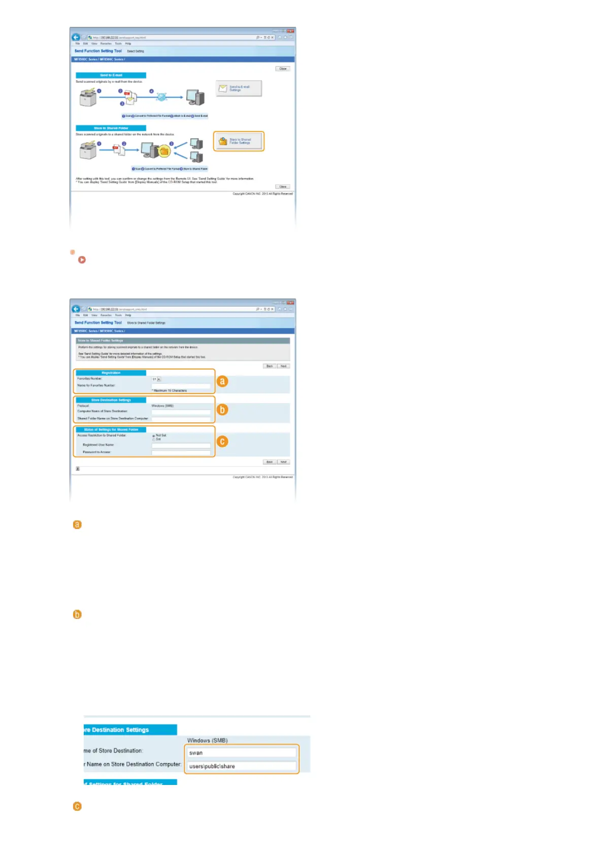 With the Send Function Setting Tool, you can register a shared folder for saving scanned documents into <Favorites> in the