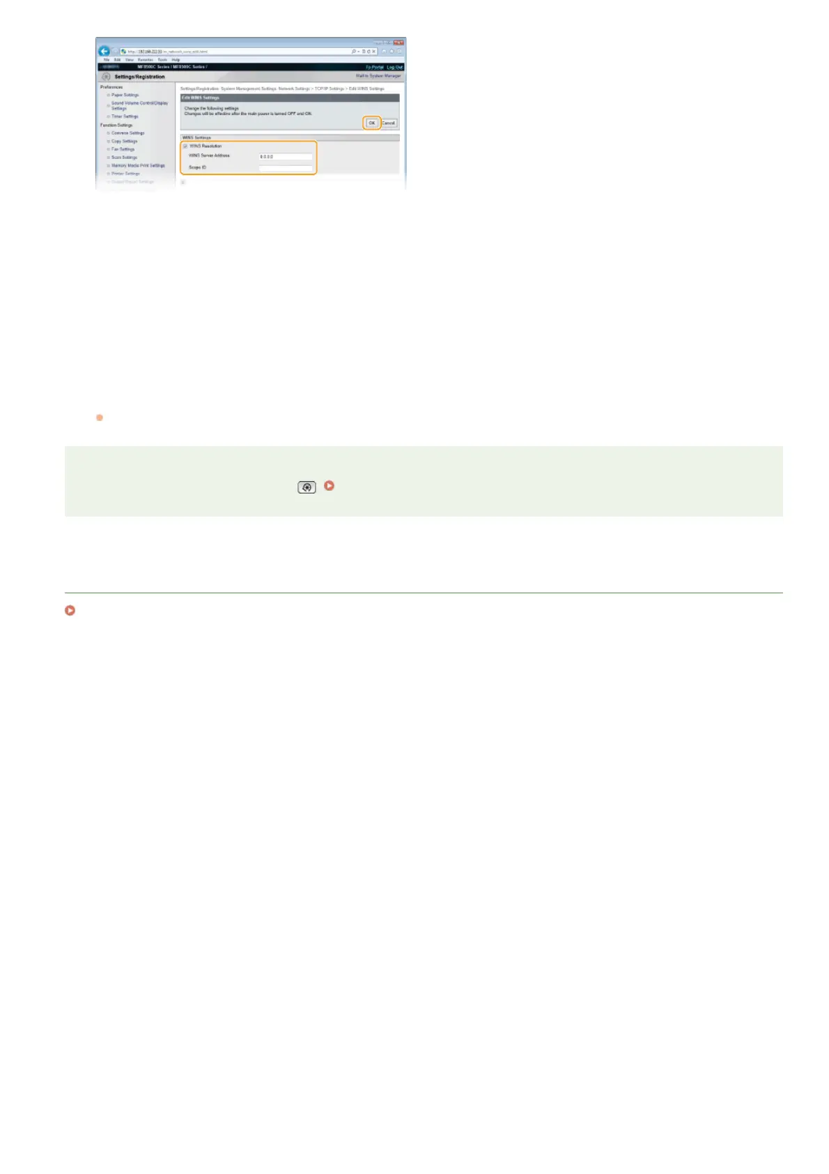 If the IP address of the WINS server is obtained from a DHCP server, the obtained IP address overrides the IP address entered in