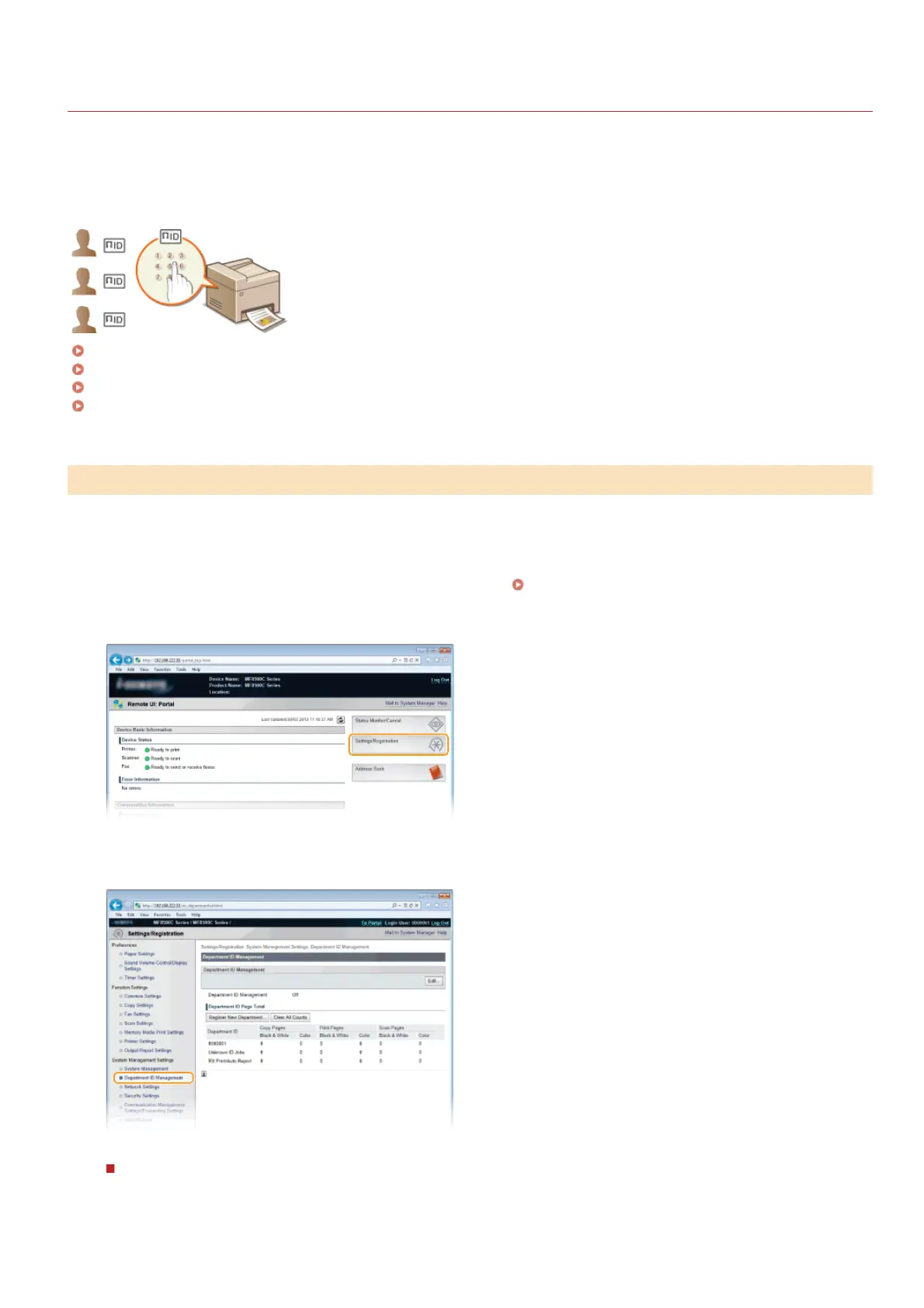 Department ID Management function. Additional settings are required if you want to enable Department ID Management for operations