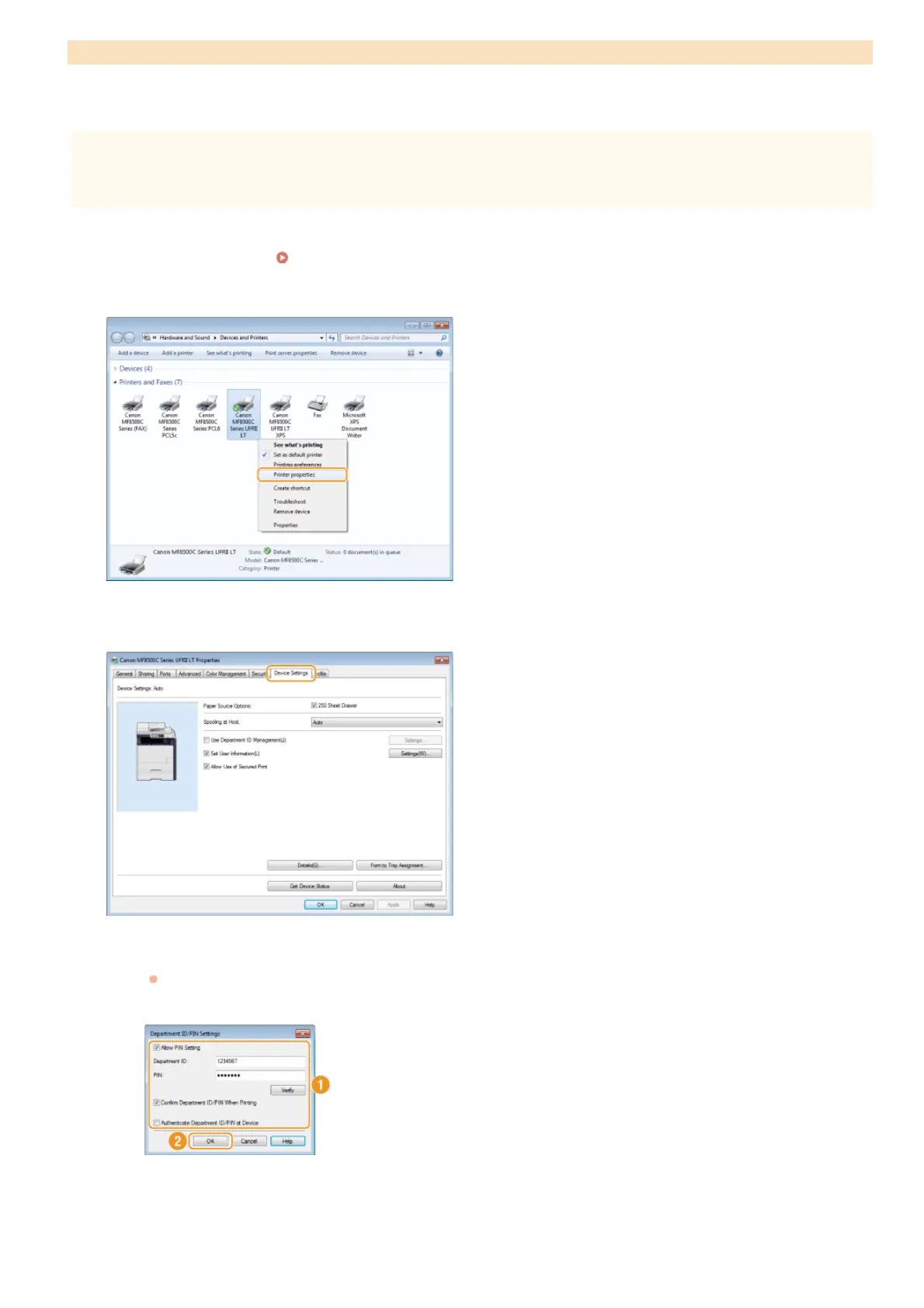 drivers you already installed on the computer. Specify the Department ID and PIN as necessary.