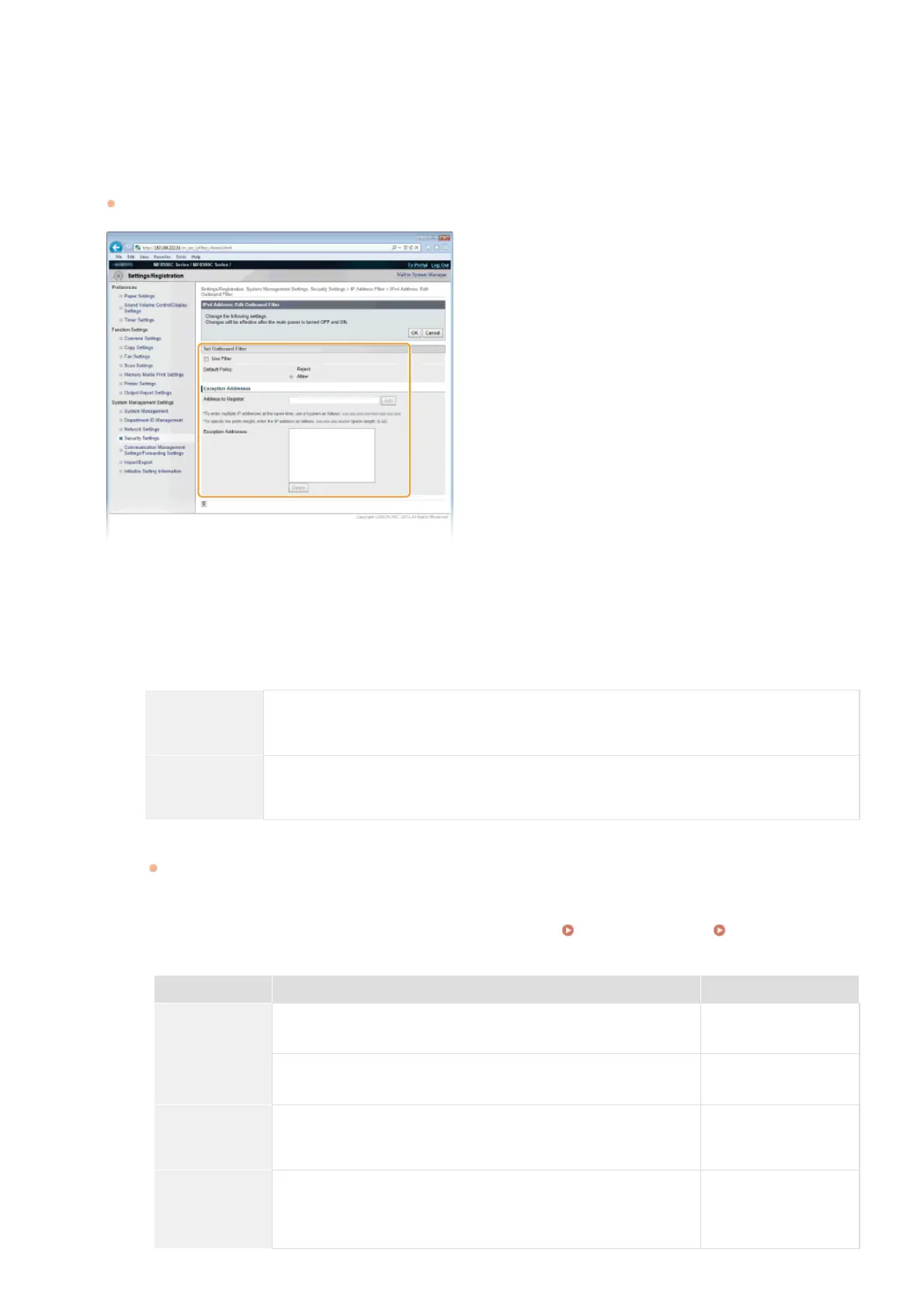 need to set <IPv4 Address Filter> or <IPv6 Address Filter> to <Off>.