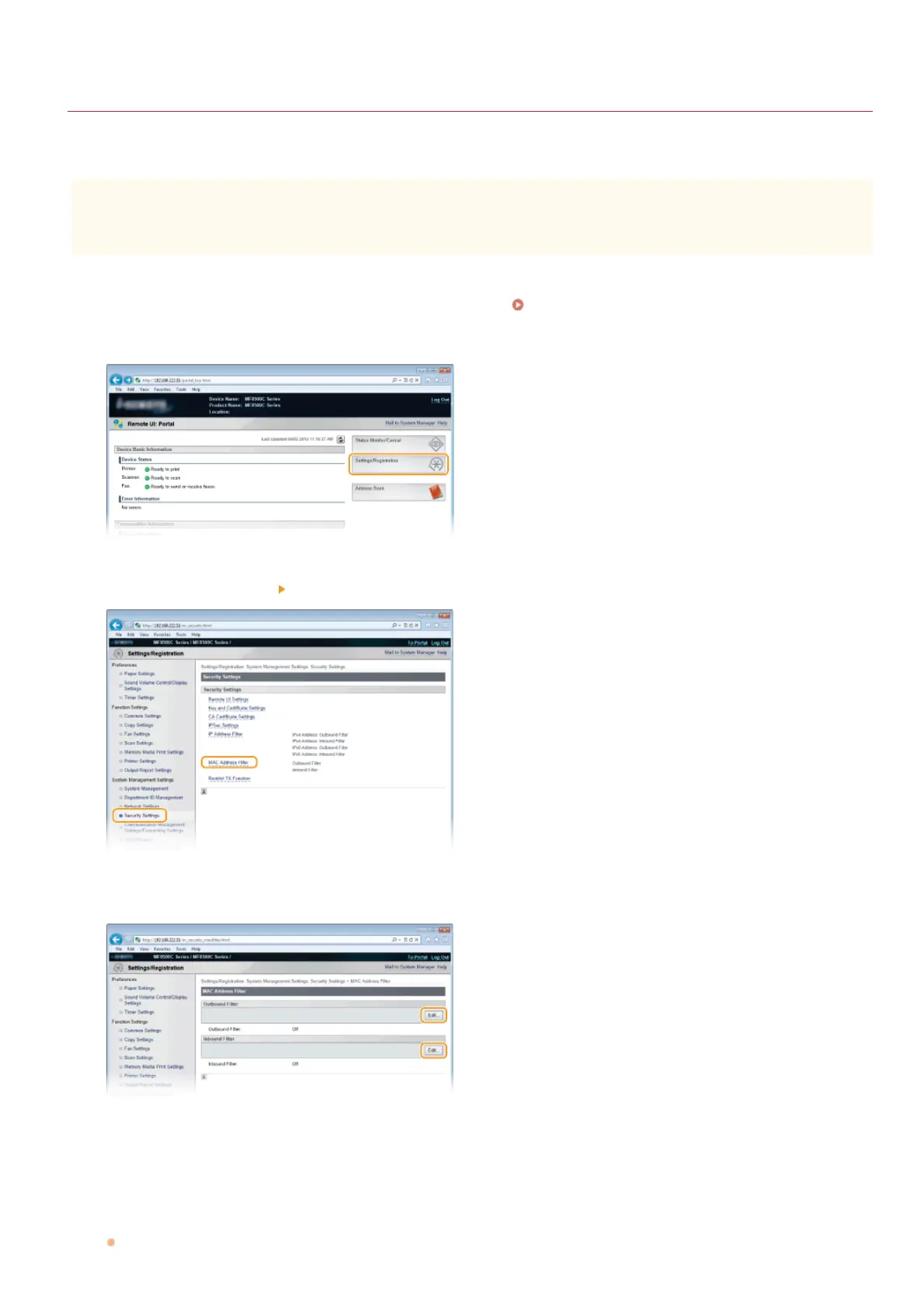 Select to restrict receiving data from the machine to a computer by specifying MAC addresses.