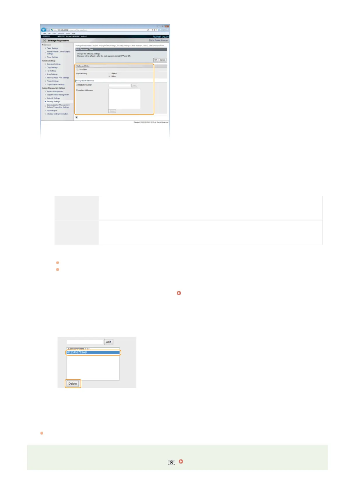 If MAC addresses are incorrectly entered, you may become unable to access the machine from the Remote UI, in which