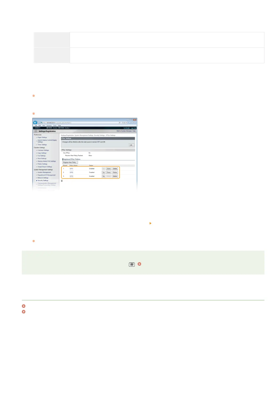 You can enable or disable the IPSec communication from . Use IPSec