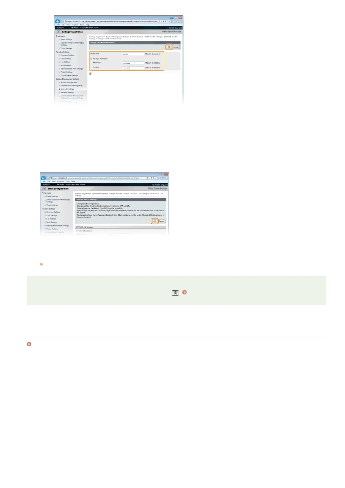 You can enable or disable the IEEE 802.1X authentication from . IEEE 802.1X Settings