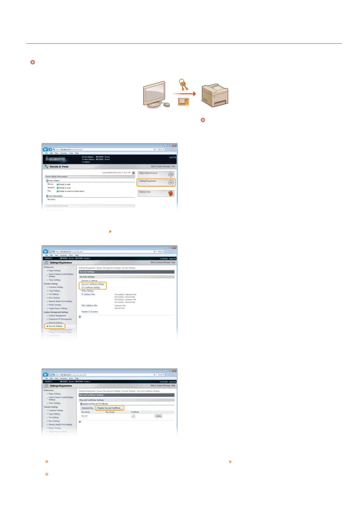 Click [Register Key and Certificate] or [Register CA Certificate].