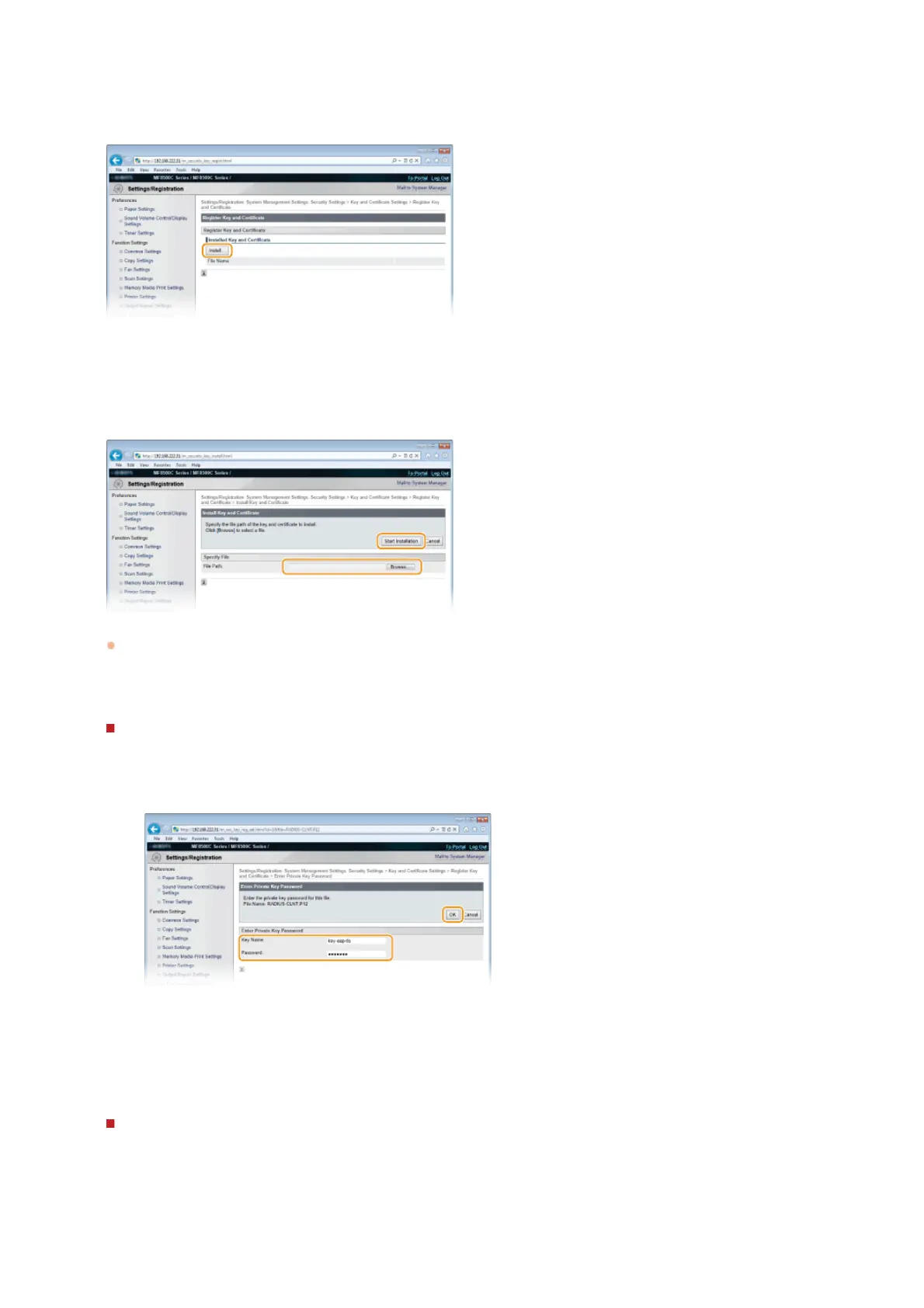 Enter up to 24 alphanumeric characters for the password of the private key set for the file to be registered.