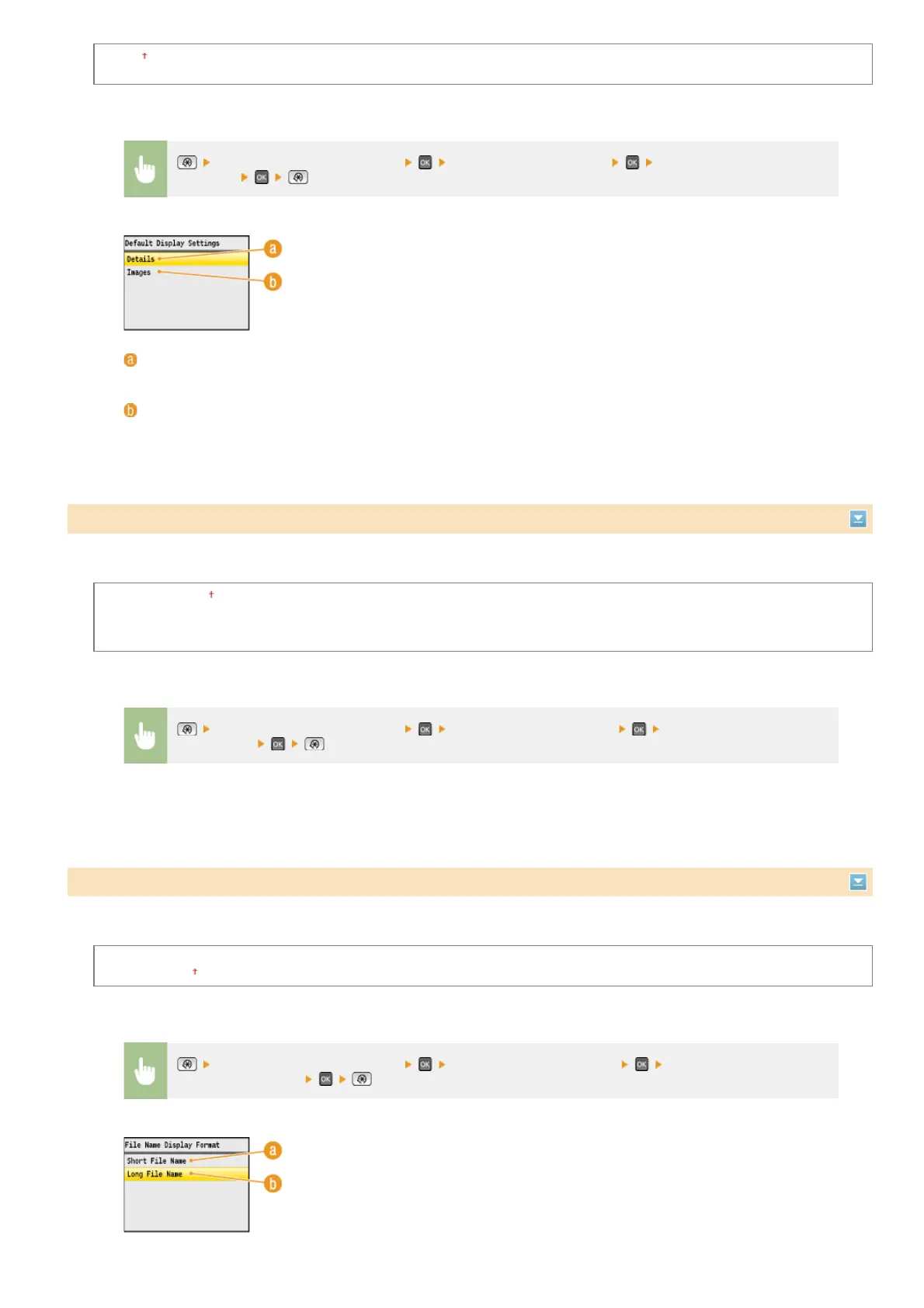 <Memory Media Print Settings> <Default Display Settings> Select <Details> or