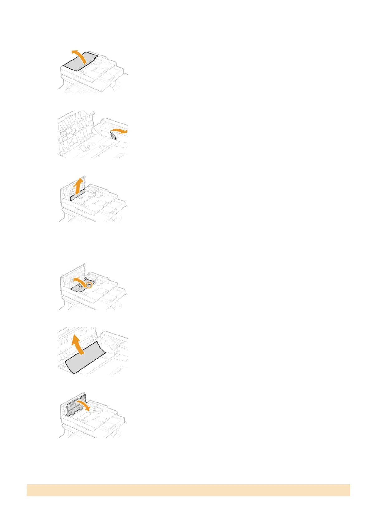Remove the jammed document from the inner cover inside the feeder.
