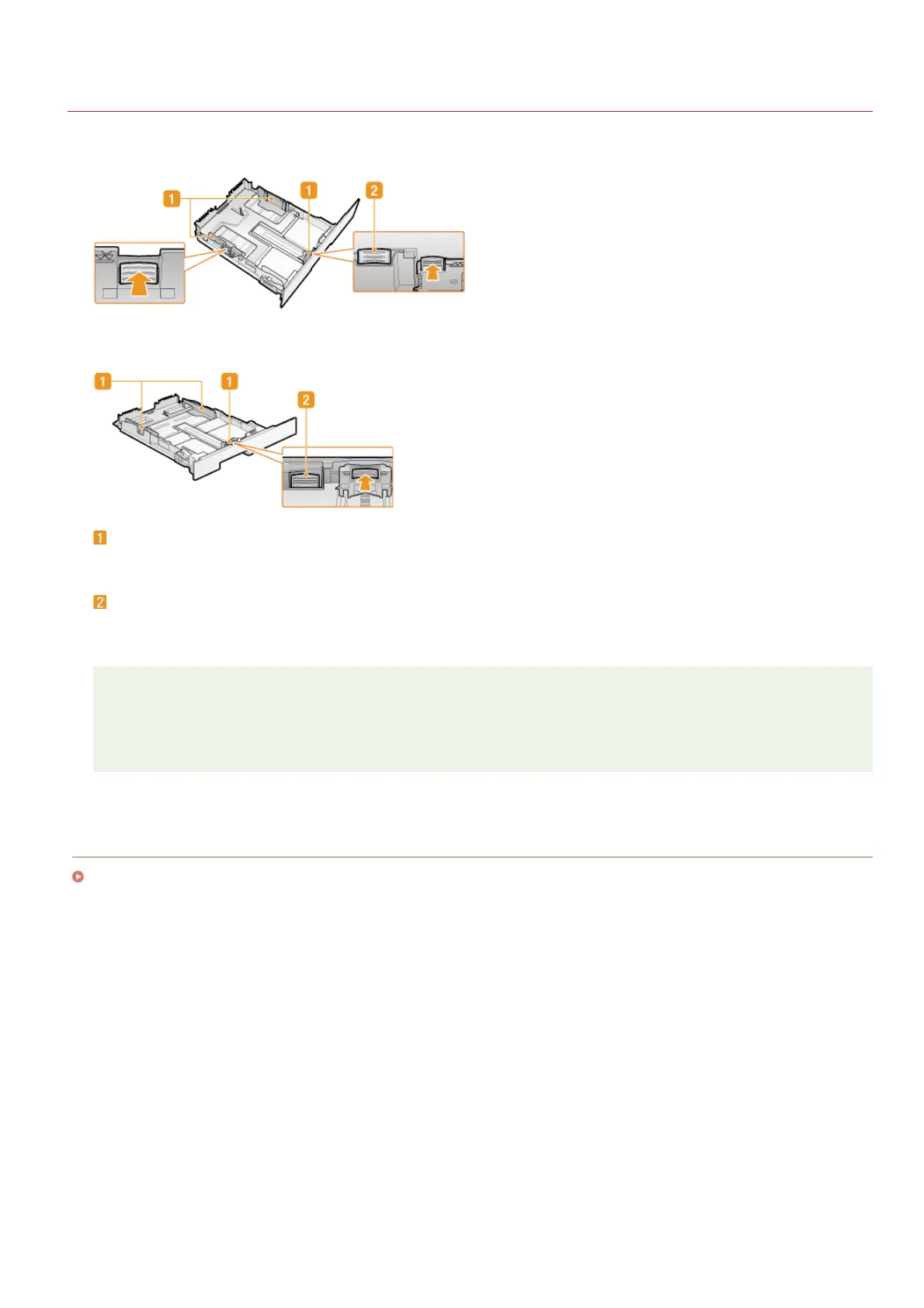lock release levers that are marked with arrows in the illustrations to release the locks and slide the paper guides.