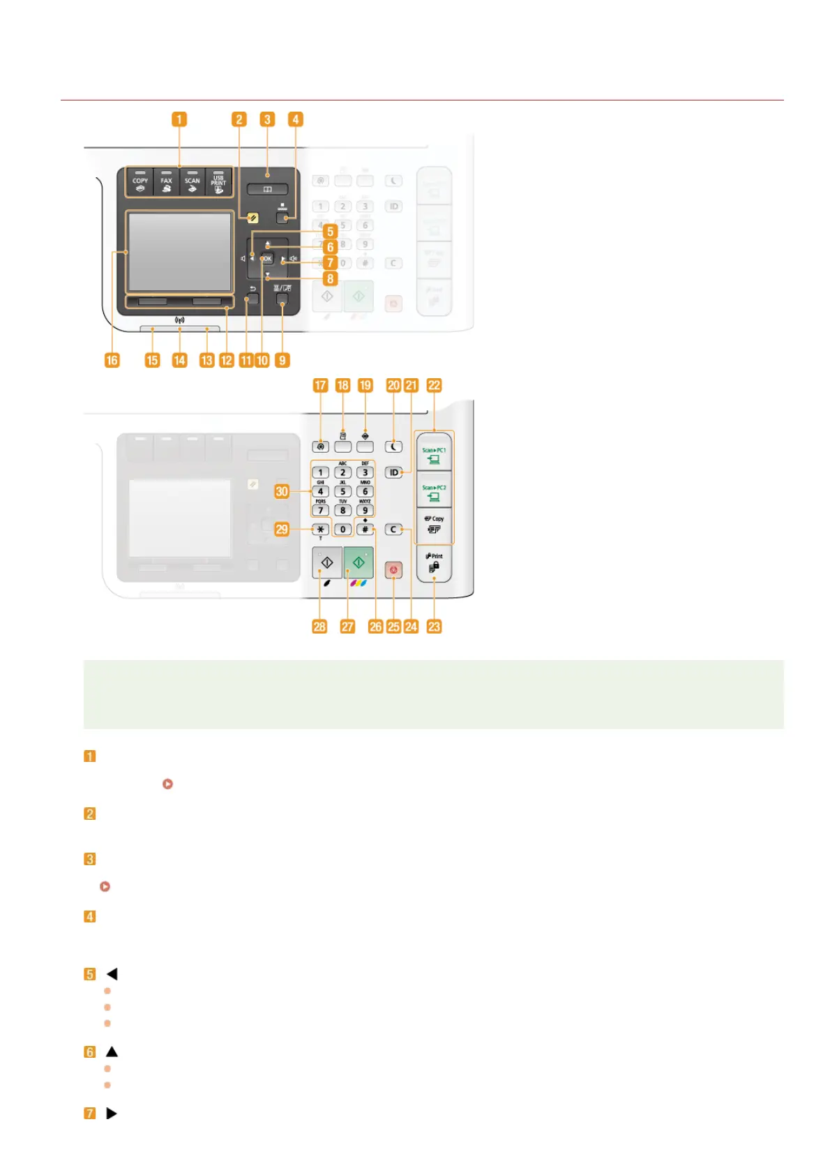 The operation panel shown above is for the MF8580Cdw. The available keys or functions vary depending on the model.