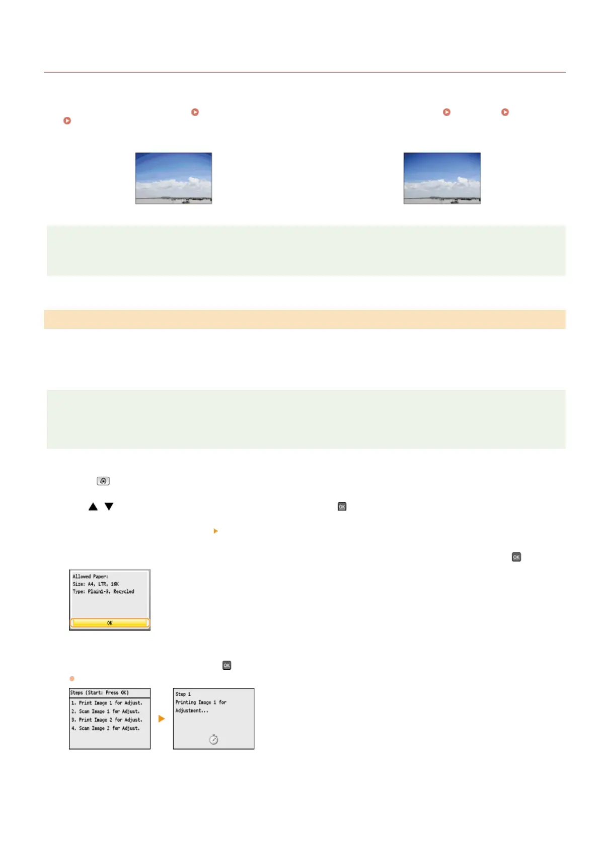 adjustment, an adjustment image will be printed twice and scanned twice. Note that you cannot perform this adjustment while