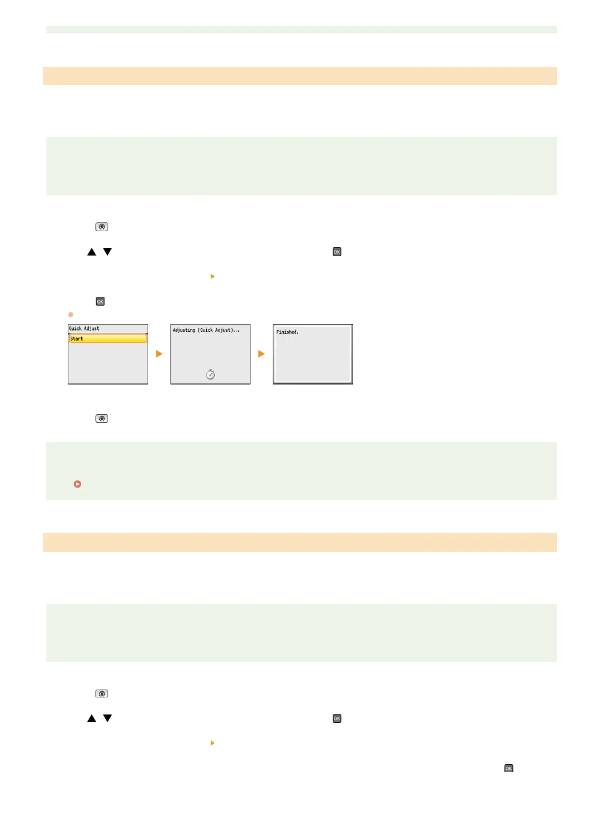 performing some functions, including, scanning, and printing. If the result of this adjustment is not satisfactory, perform <Full Adjust>.
