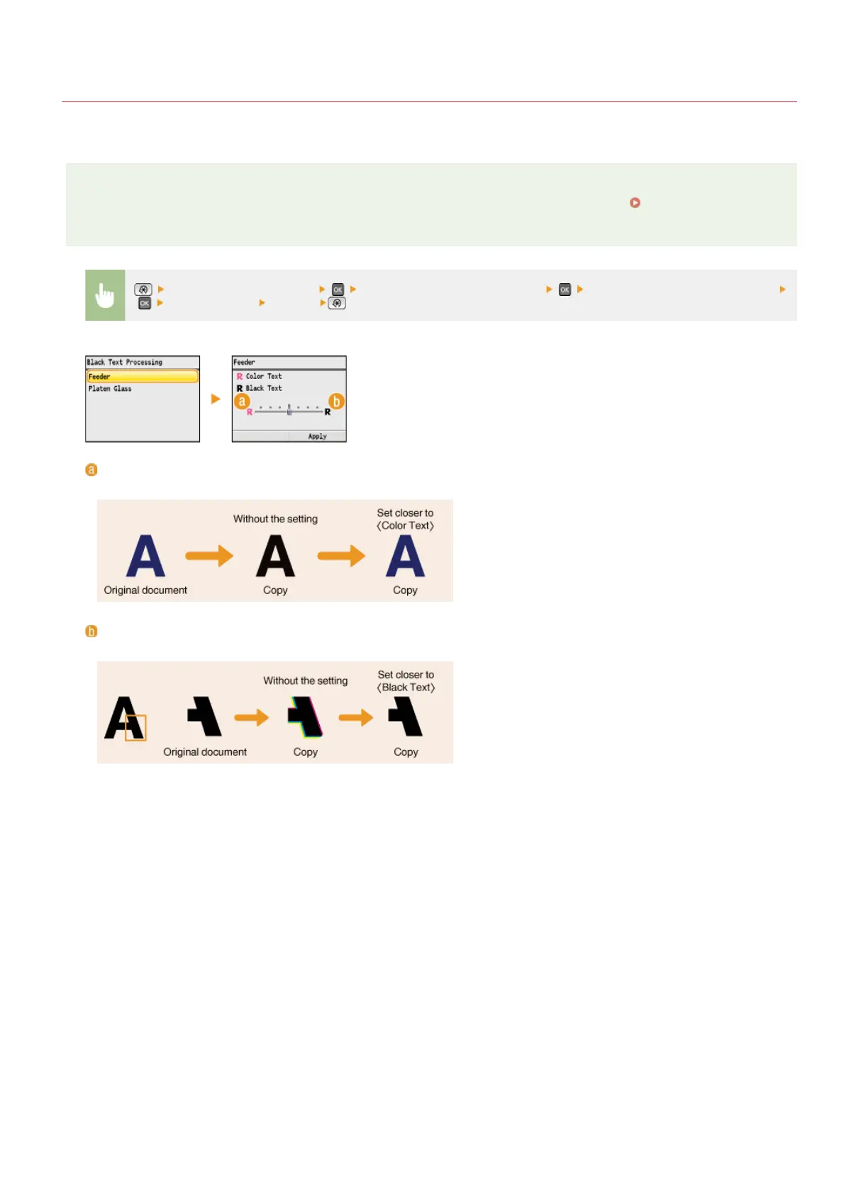 <Adjustment/Maintenance> <Black Text Processing for Color> Select <Feeder> or <Platen Glass>