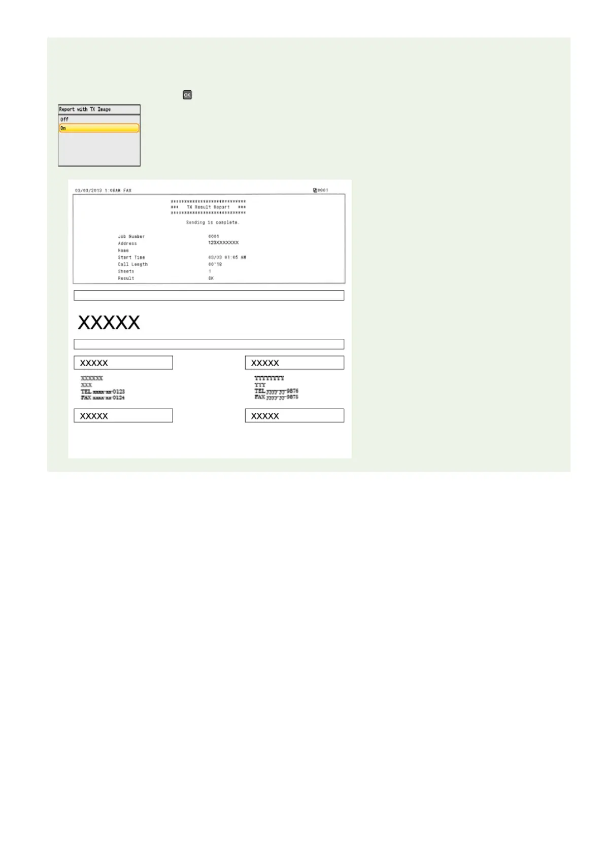 When you select <On> or <Only When Error Occurs>, a part of a fax document can be included in the report. Set <Report with