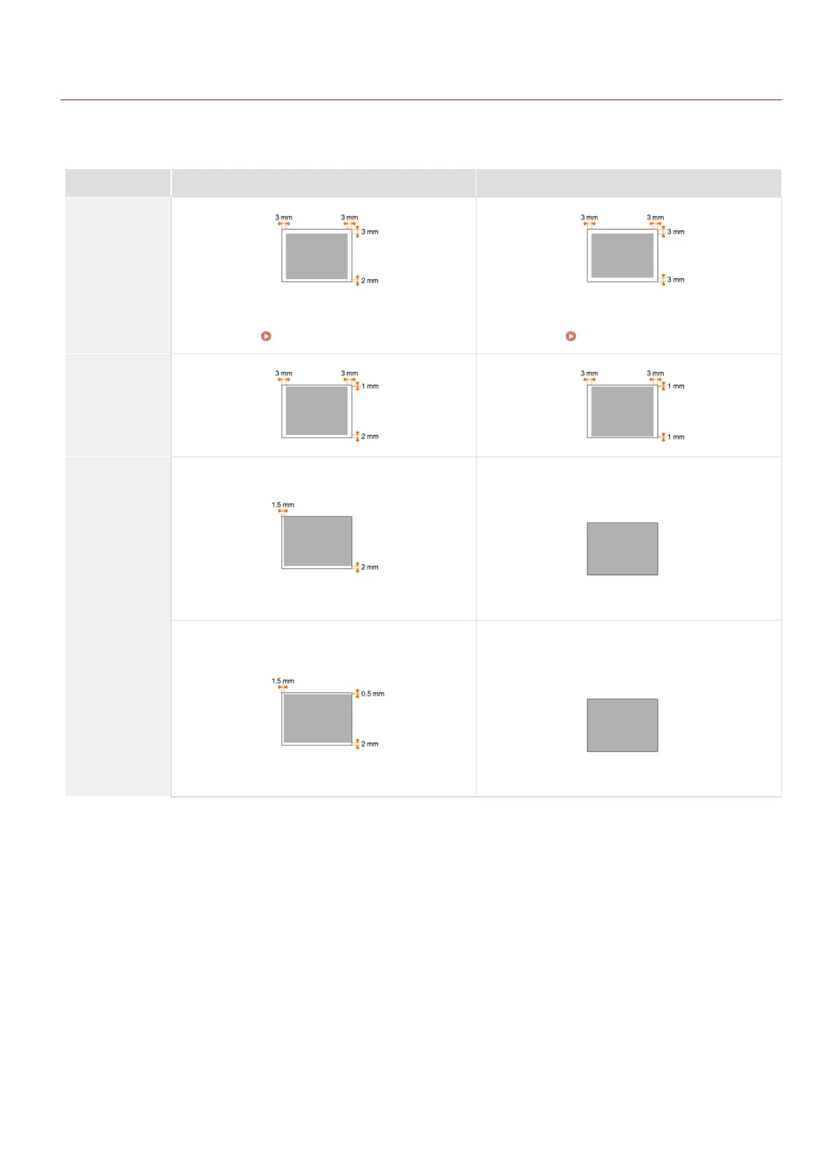 The shaded areas in the table below indicate the scan area of the document. Make sure that text and images in your documents fit