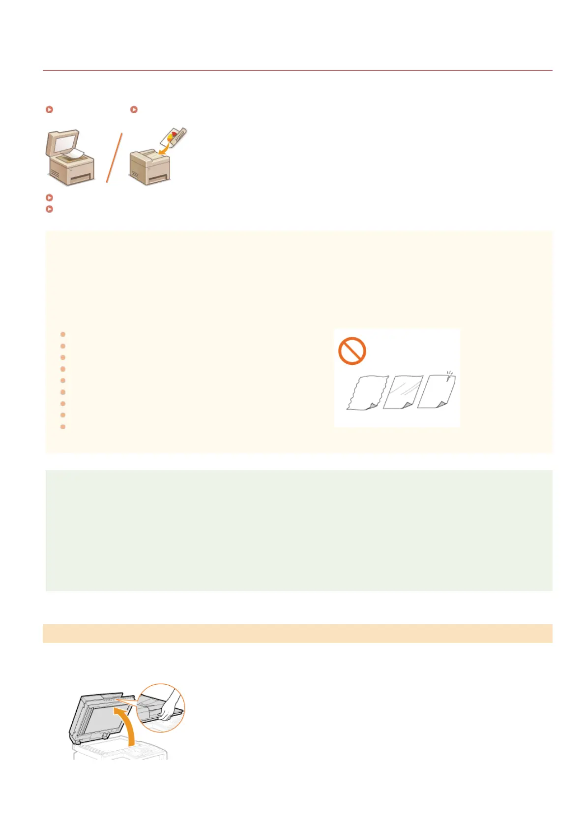 When placing documents, make sure that any glue, ink, or correction fluid on the documents has completely dried.