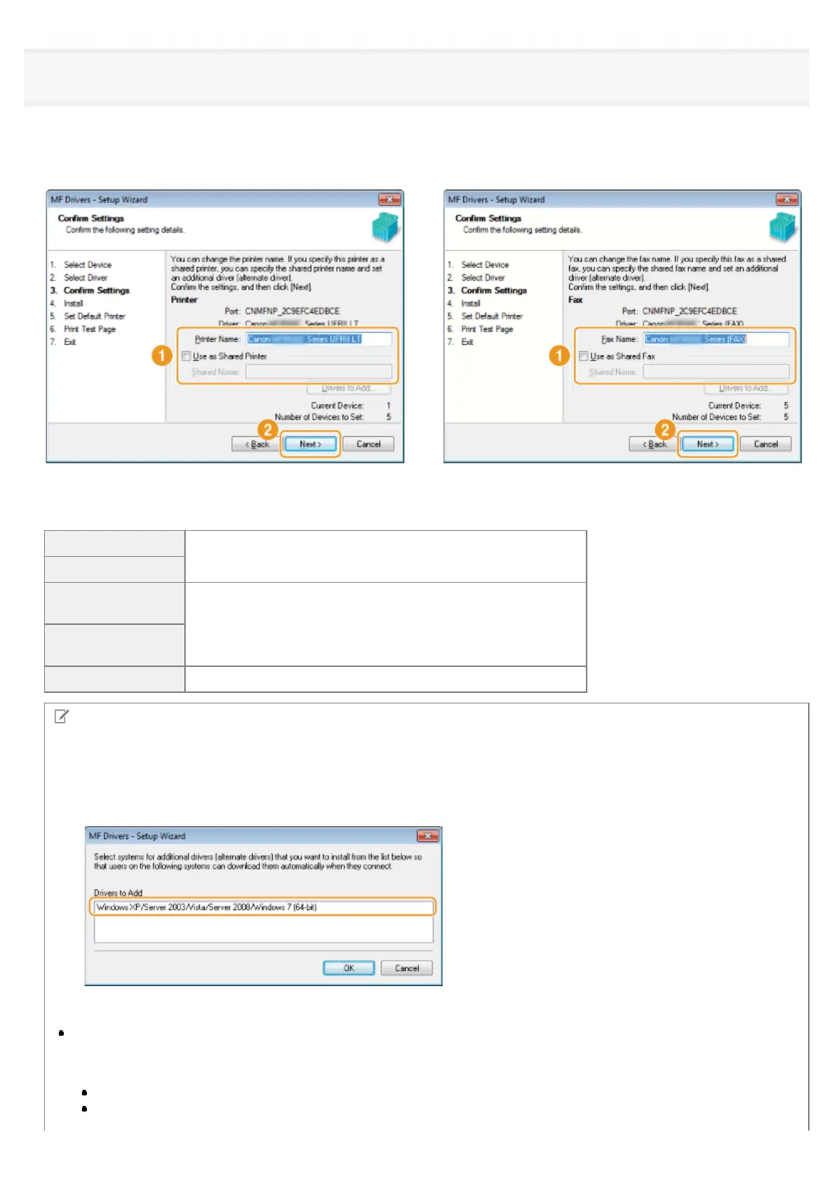 If you selected the [Use as Shared Printer] or [Use as Shared Fax] check box: