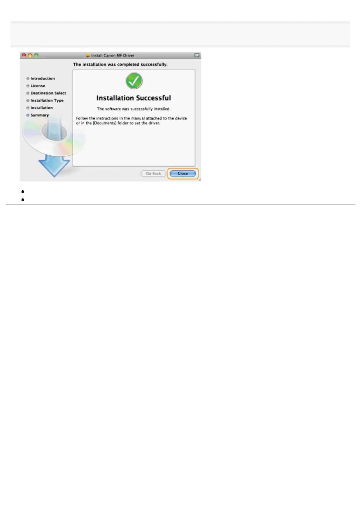 When the following screen appears, click [Close].