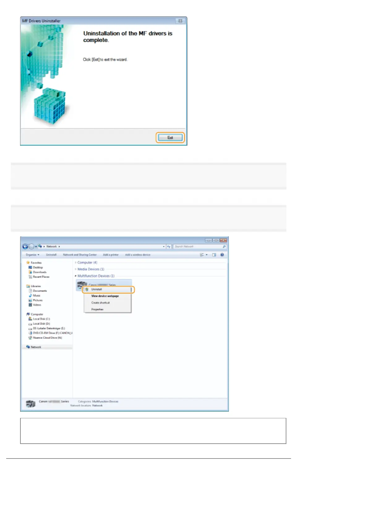 The machine icon is deleted from the printer folder, and uninstall is completed.