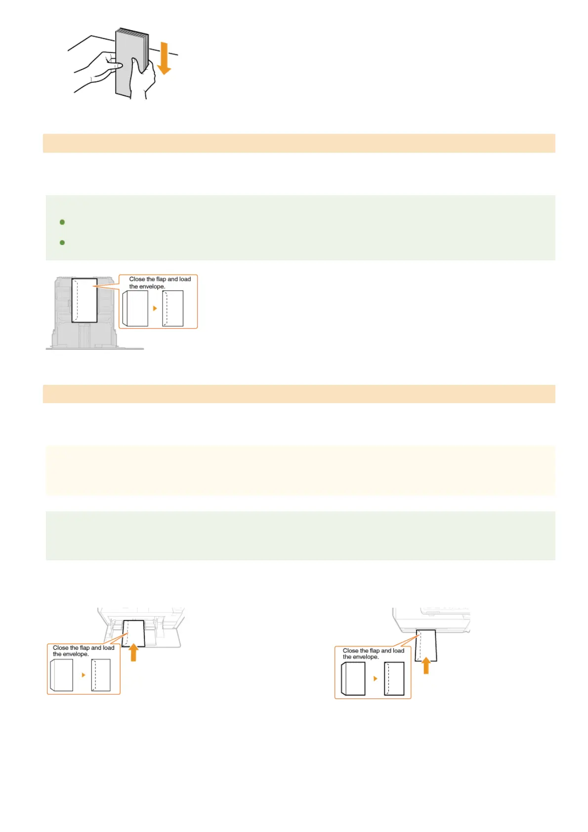 Load the envelopes so that the edge with the flap is toward the left side as shown in the illustration.