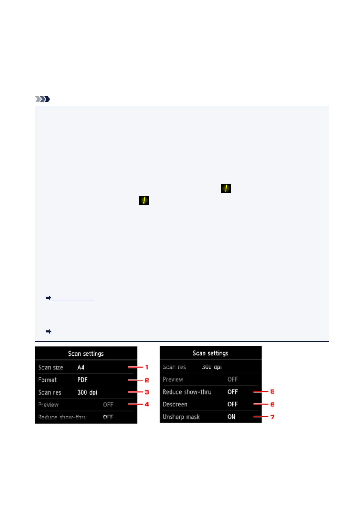 • When scanning starts in the scan menu that is not available with the specified setting, The specified